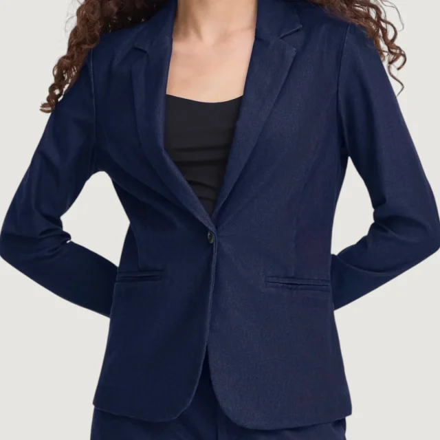 The soft, high-quality fabric composition ensures comfort throughout the day, while the button fastening adds an elegant touch that pairs beautifully with both casual and formal attire. Whether you wear it over a blouse, sweater, or dress, this blazer will instantly elevate your look. Its blue color adds a refreshing pop to your outfit, while the flattering fit gives you a polished and put-together appearance.