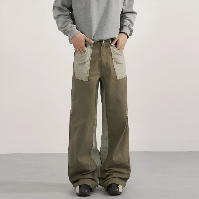 Vintage Contrast Patchwork Cargo Pants – Loose Fit Wide Leg