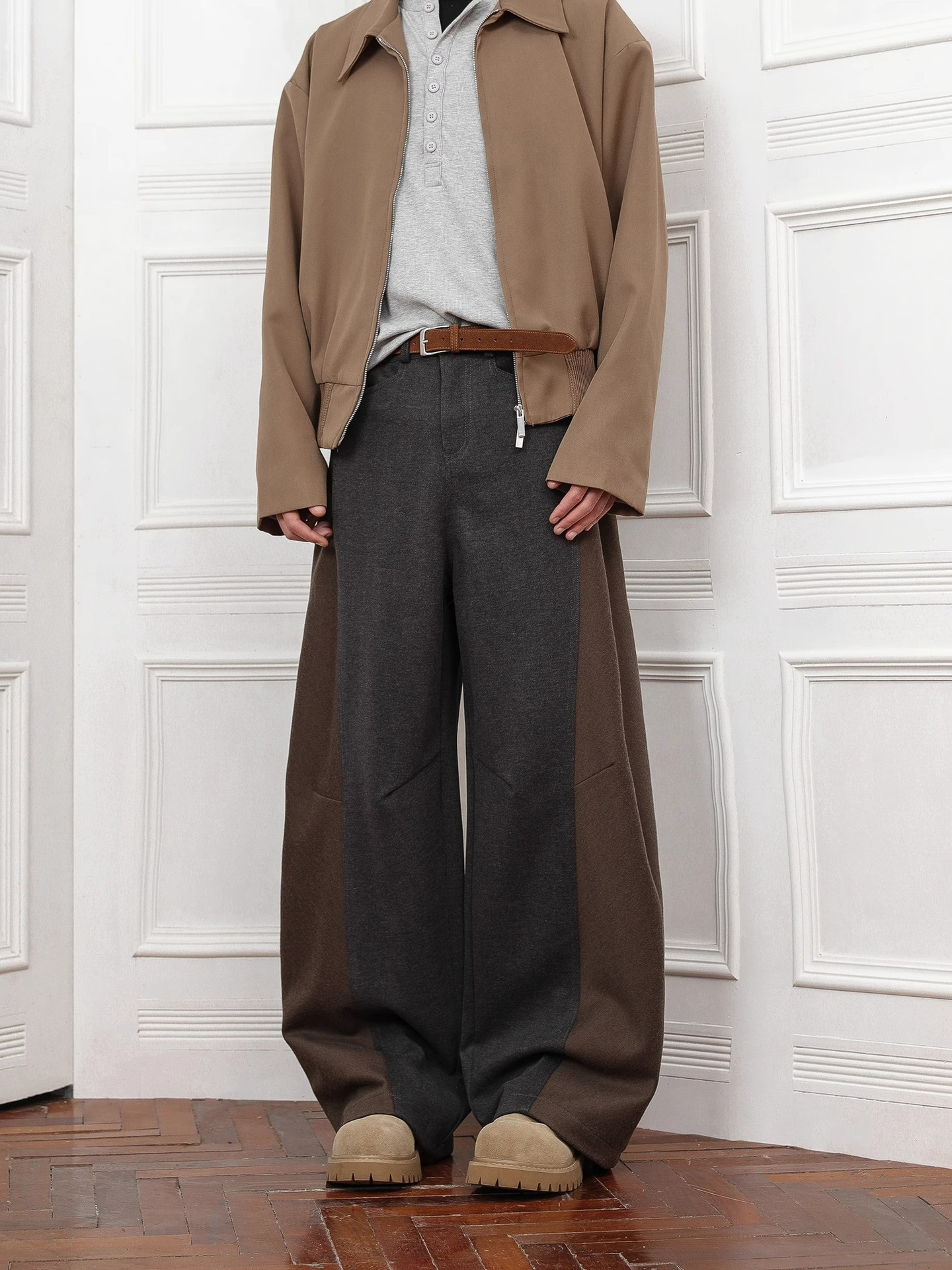 Men’s Contrast Patchwork Wide-Leg Straight Pants – Casual All-Match Style