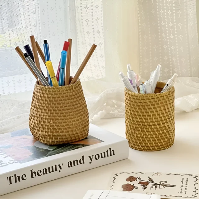 Bring a touch of nature and elegance to your workspace or home with this Imitation Rattan Woven Pen Holder & Multi-Functional Storage Basket. Designed with a handwoven look and crafted from eco-friendly bamboo, this versatile organizer combines rustic charm with practical modern functionality. Whether you’re arranging pens, makeup brushes, utensils, or even small floral displays, this beautiful basket effortlessly enhances any setting.