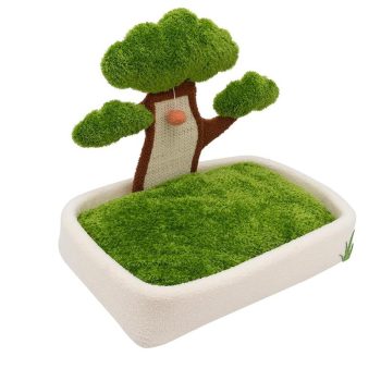 Luxury Indoor Cat House with Pine Tree Scratching Post & Plush Velvet Bed