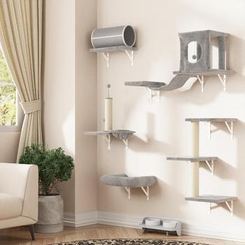 7-in-1 Wall Mounted Cat Climber Furniture Set with House, Tunnel & Hammock