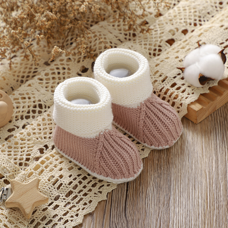 Our infant knit booties are thoughtfully crafted with your baby’s comfort and safety in mind. The upper part is securely fixed with stitching, ensuring durability even with active little ones. These shoes provide coverage just below the ankle, offering freedom of movement while staying snug on your child’s feet. While not waterproof, the breathable knit fabric makes them ideal for indoor use or mild weather conditions.