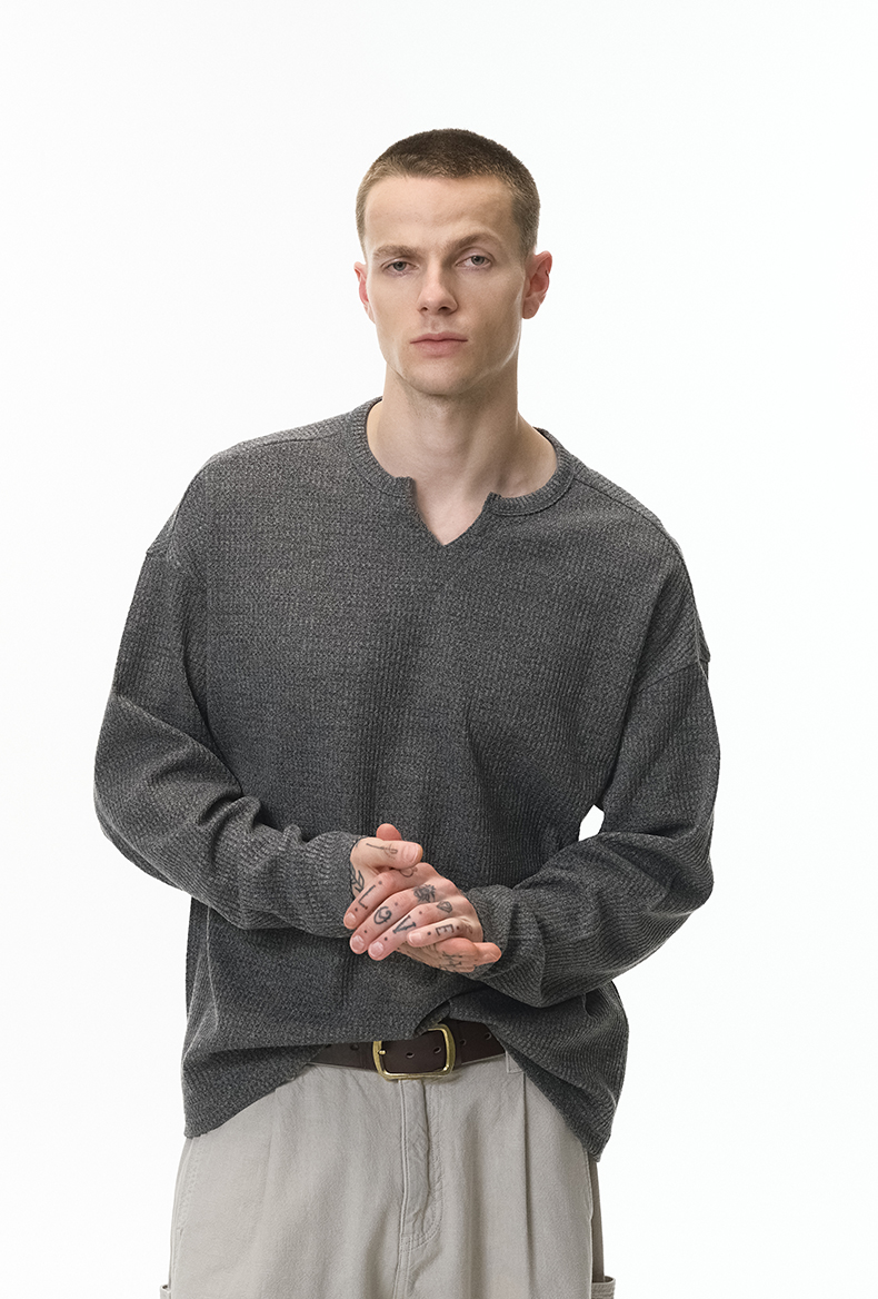 Upgrade your casual wardrobe today and experience the perfect blend of comfort and style. Add this waffle knit V-neck long sleeve tee to your collection and enjoy relaxed, effortless fashion every day.