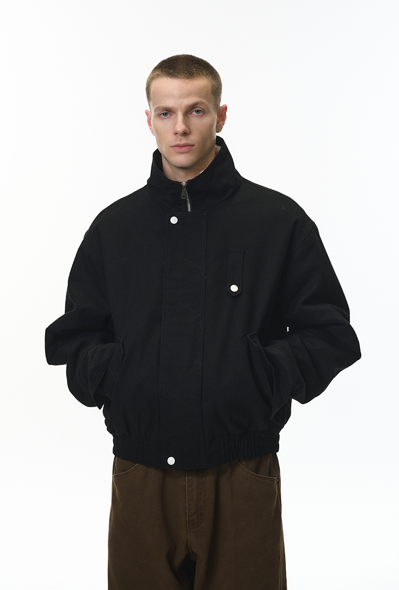 This jacket brings together essential features that make it a practical and appealing choice for daily wear. Its regular fit and mandarin collar offer a clean silhouette, while the contrast-color design adds a subtle touch of vintage streetwear flair. The full-zip opening makes it easy to slip on and off, and the hood adds extra protection on windy or chilly days. Available in light apricot, khaki, and black, it pairs effortlessly with jeans, joggers, or layered outfits.