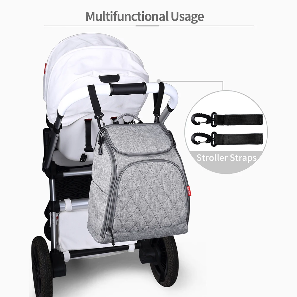 • Versatile Design: Can be worn as a backpack, tote, or attached to a stroller for hands-free convenience.
