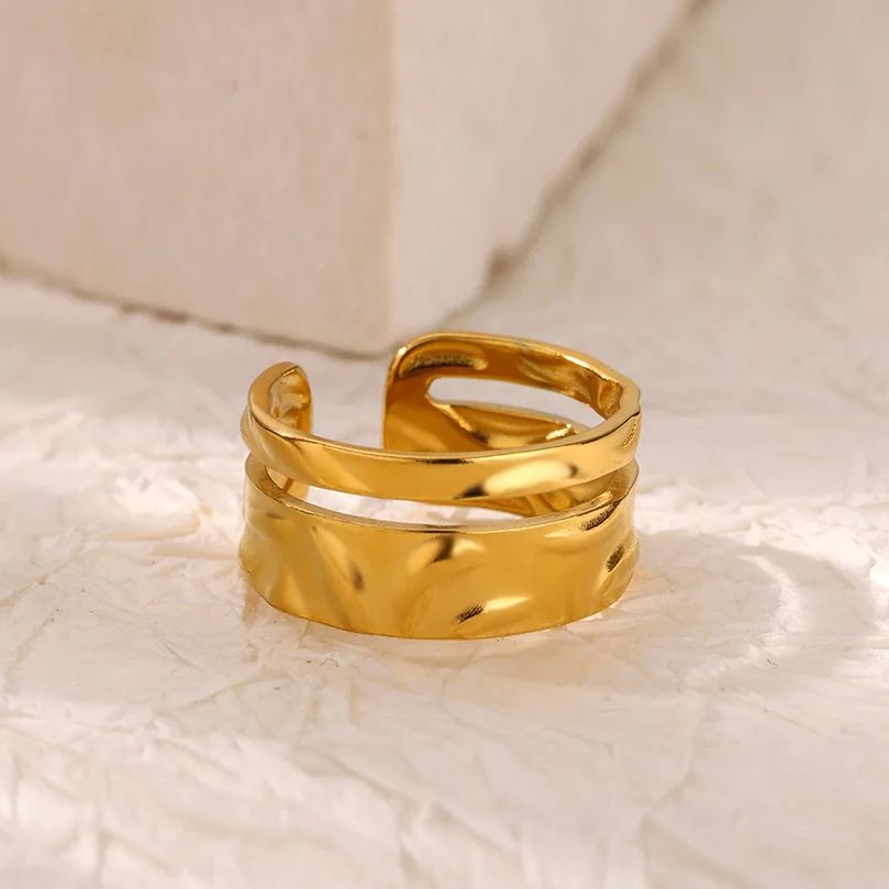 Don’t settle for ordinary – embrace the extraordinary with this double layer hollow open ring. It’s more than just a wedding band; it’s a bold fashion statement that highlights your individuality. Whether you’re treating yourself or gifting it to someone special, this gold stainless steel ring will make every moment unforgettable.