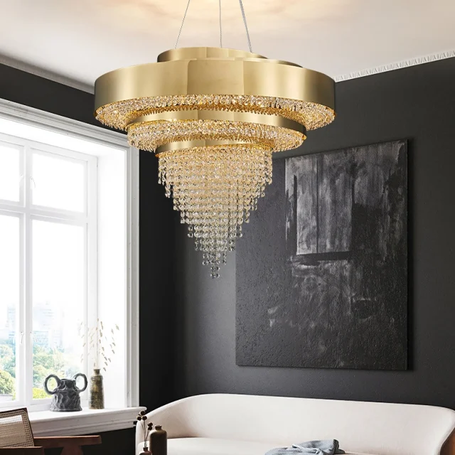 Luxury Italian Crystal Round Gold Chandelier – Modern Elegance for Every Room