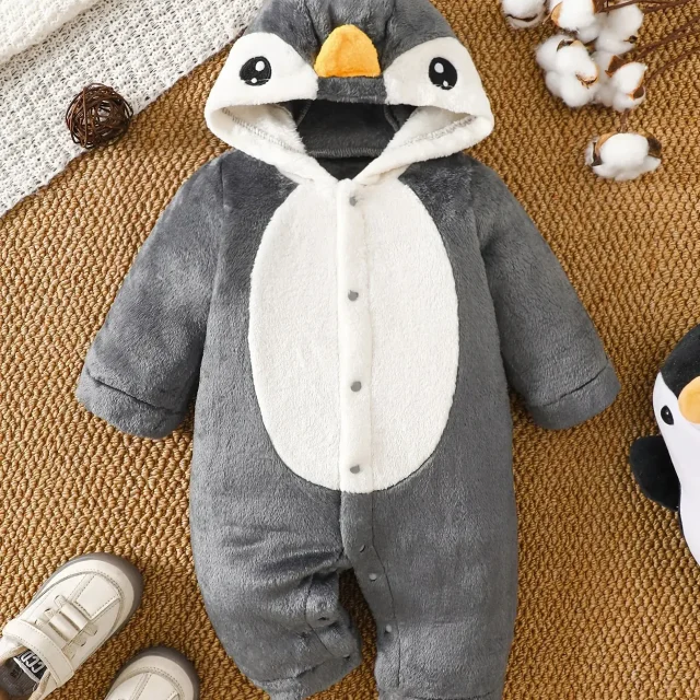 Baby Penguin Plush Snowsuit Footed Romper – Cozy Cartoon Infant Onesie