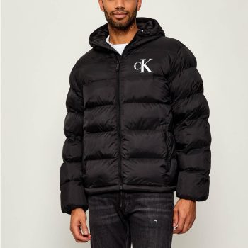 Calvin Klein Jeans Men’s Black Printed Turtleneck Hooded Jacket