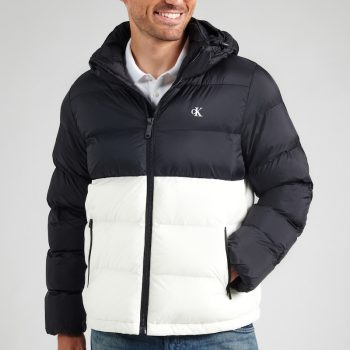 Calvin Klein Jeans Men’s White Hooded Winter Jacket with Zip