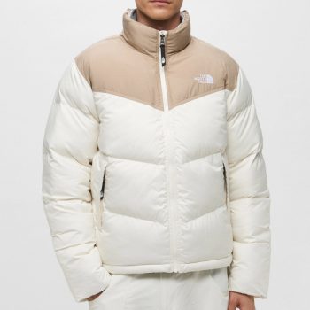 The North Face Men’s Beige Winter Zip Jacket – Turtleneck & Front Pockets