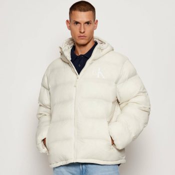 Calvin Klein Jeans Men’s Beige Turtleneck Hooded Jacket