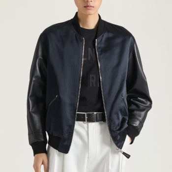 Givenchy Satin & Leather Bomber Jacket with Logo Applique