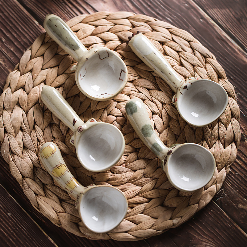Bring a touch of whimsy to your dining table with this Handmade Ceramic Animal Spoon, inspired by Japanese and Korean craftsmanship. Each spoon is lovingly shaped and painted by hand, making every piece truly one-of-a-kind. Featuring adorable cartoon animal designs, this short-handled spoon adds joy and charm to every bite—perfect for those who appreciate fine details and playful style in their tableware.