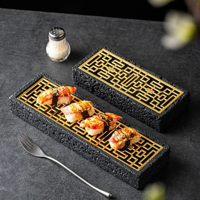 From beautifully arranged sushi rolls to decadent desserts served on a bed of misty dry ice, this plate elevates presentation and ambiance alike. Its refined rectangular shape and ceramic texture echo the elegance of Japanese craftsmanship, making it not just tableware—but a statement of taste.