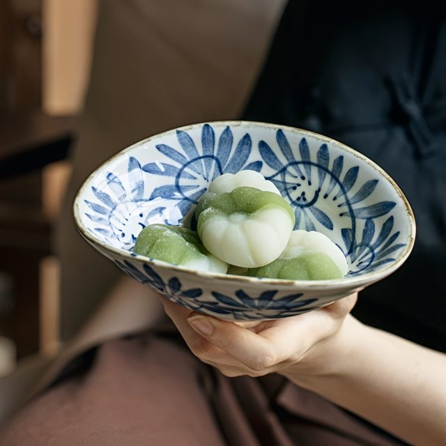 Hand-Painted Japanese Shallow Bowl – Unique Appetizer & Dim Sum Dish