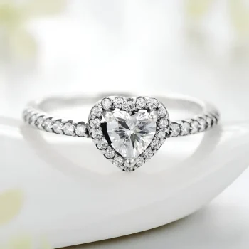 Exquisite 925 Sterling Silver Vintage Heart Ring with Clear CZ Stones