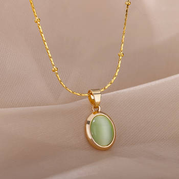 Gold Opal Oval Pendant Necklace for Women – Trendy Stainless-Steel Jewelry