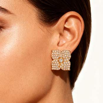 18K Gold Plated Zircon Flower Stud Earrings for Women