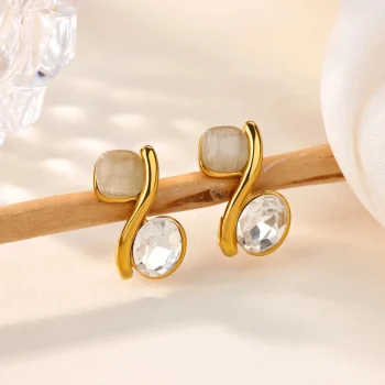 Gold-Plated Cat’s Eye & Crystal Stud Earrings for Women