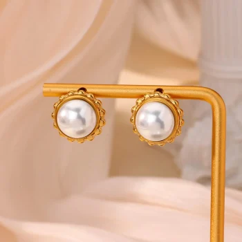 18K Gold Plated Stainless Steel Pearl Stud Earrings for Women