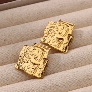 Gold Stainless Steel Irregular Square Texture Stud Earrings for Women