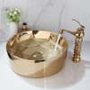 Bring timeless elegance and modern sophistication to your bathroom with this Golden Plated Ceramic Round Faucet & Basin Set. Designed to impress, this exquisite combination blends artful craftsmanship with practical functionality. Its shimmering gold finish adds a touch of royalty to your wash space, while the smooth ceramic basin showcases stunning hand-painted detailing that makes each piece one of a kind.