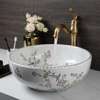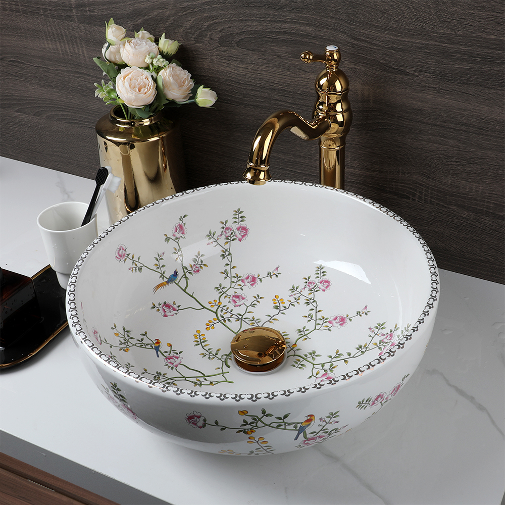 Transform your bathroom into a serene work of art with this stunning hand-painted floral ceramic sink set. The circular basin features intricate flower and bird motifs that bring a touch of nature-inspired charm to your space. Crafted from high-quality ceramic, this elegant washbasin adds sophistication and timeless beauty to any modern or traditional bathroom.