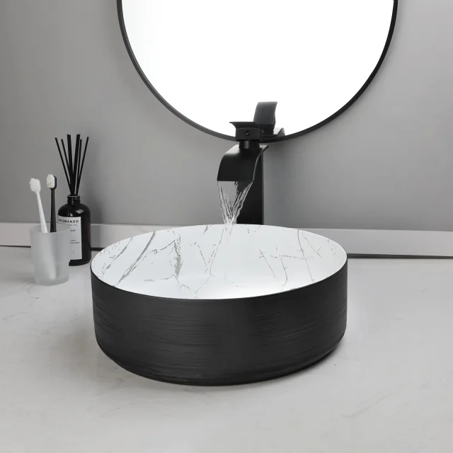 Experience the harmony of art and practicality. With this elegant round ceramic basin and matte black faucet set, every wash feels like a luxurious ritual. Add it to your bathroom and enjoy the perfect blend of design, durability, and comfort. Order yours now and bring refined elegance into your daily routine.