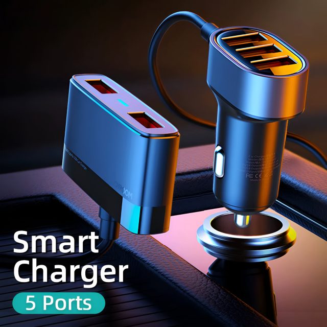 24W Dual USB Fast Car Charger with LED Display and 5-Port Expansion