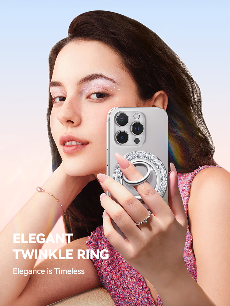 Add sparkle, comfort, and security to your device with this stunning magnetic phone ring grip. Designed for anyone who wants easier one-handed use and a touch of glamour, this accessory blends a shimmering glitter finish with serious holding power. Whether you’re texting on the go, video chatting hands-free, or capturing photos at the perfect angle, it offers a smooth, stable, and elegant experience every time.