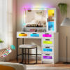 Vanity Desk with Mirror & RGB Lights – Makeup Table with Charging Station