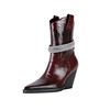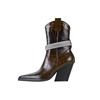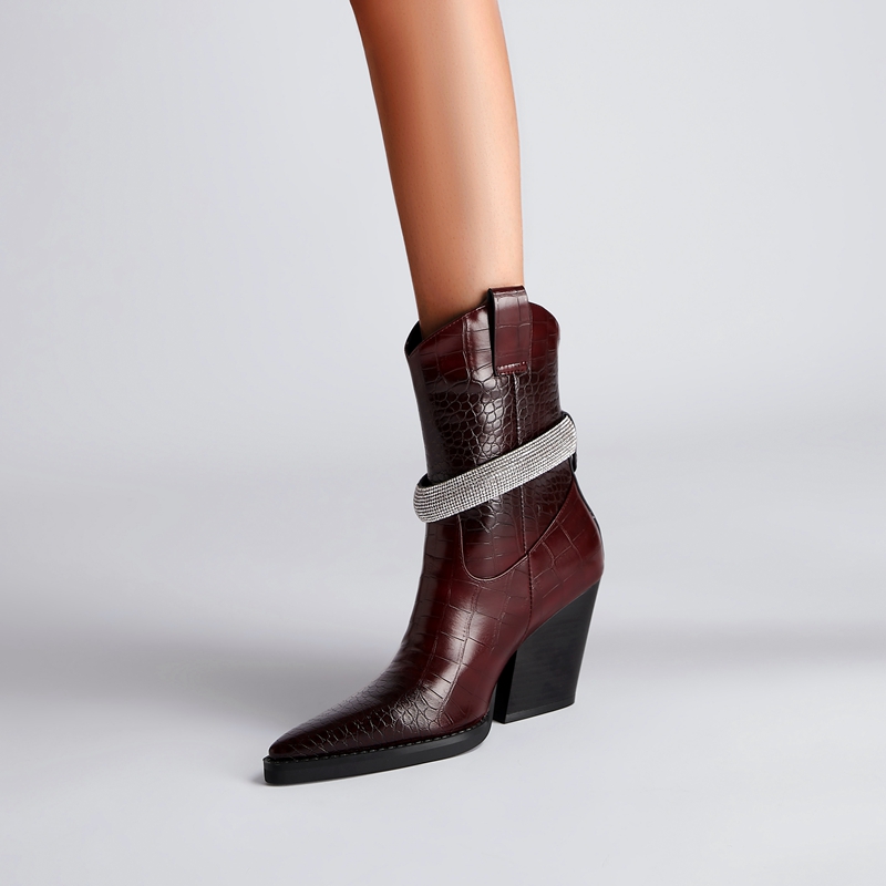 Step into confidence with these bold pointed toe western ankle boots designed to elevate your everyday style. With a sharp silhouette, rich dark tones, and a powerful thick high heel, these boots are made for women who love fashion with attitude. The sleek pointed toe adds a refined edge, while the western-inspired shape brings timeless character to every outfit.
