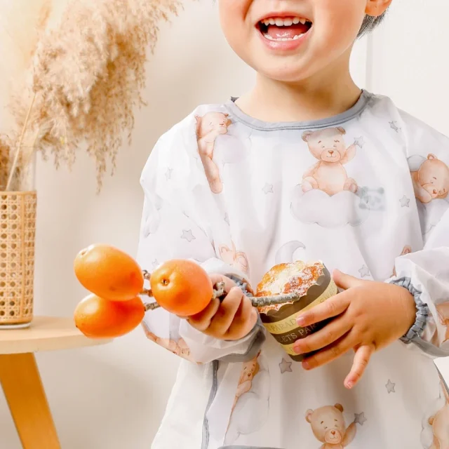 Transform messy moments into happy ones. This full-body feeding bib keeps your little one clean, comfortable, and free to explore food with confidence. Add it to your cart now and make every bite a breeze.