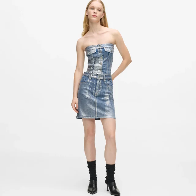 Crafted with a high-waisted silhouette, this skirt hugs your curves and enhances your natural shape, making it the ultimate piece for a flattering fit. The coated denim finish adds a touch of shine, giving you that effortlessly chic look you crave. Whether you’re heading out for a casual brunch or a night on the town, this skirt adapts perfectly to any occasion, bringing a pop of light blue to your outfit.
