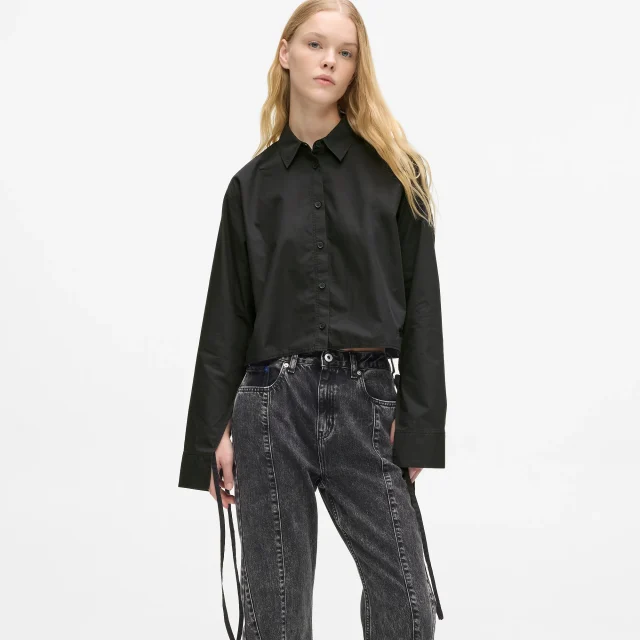 The Karl Lagerfeld Women’s Cropped Tie Back Shirt is a modern take on a timeless classic. Crafted from 100% organic cotton, this shirt offers a relaxed yet stylish vibe perfect for the spring and summer seasons. With its cropped silhouette and washed finish, it provides a laid-back, lived-in feel that adds an effortlessly cool touch to your wardrobe. The ties at the back and sleeves elevate this shirt, giving it an edgy attitude that’s uniquely Karl Lagerfeld.
