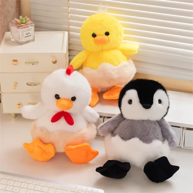 Bring home a burst of pure cuteness with these Eggshell Baby Animal Plush Toys. Designed to brighten any room, these fluffy cartoon-inspired penguin, duck, and chick characters sit snugly in their playful “eggshell” design. Each plush is crafted from soft plush fabric and filled with premium PP cotton, making it irresistibly huggable and gentle to the touch. At approximately 12 inches tall, it’s the perfect size for cuddling, decorating, or gifting.