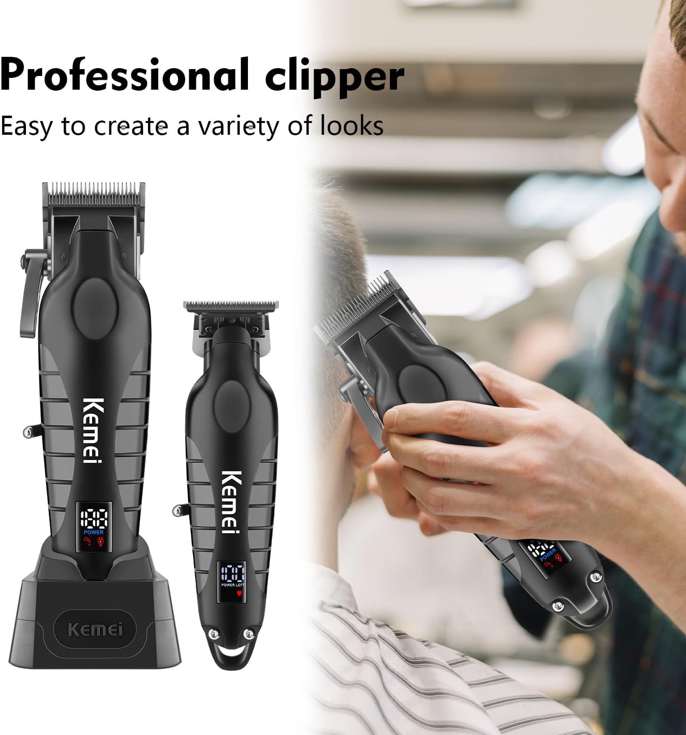 With this clipper set, you no longer have to spend money at a salon for a quick trim. Its portable, lightweight design makes it easy to use at home or while traveling, ensuring you look your best at all times. Plus, the modern LCD display takes the guesswork out of battery life, so you’re always ready for your next trim.