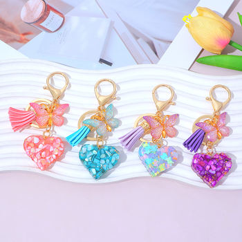 Boho Sequin Heart & Butterfly Tassel Keychain Pendant