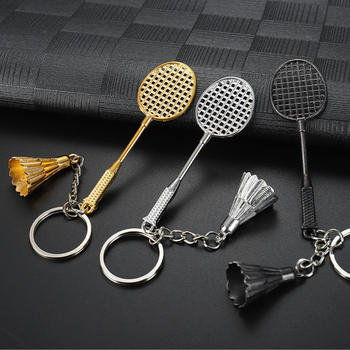 Mini Badminton Racket Keychain Retro Metal Sports Keyring