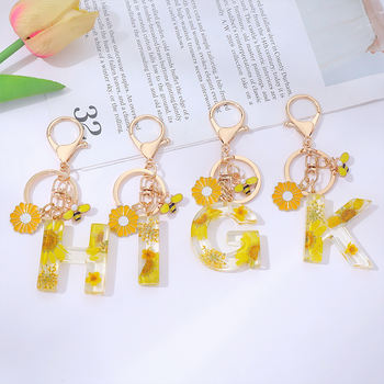 Cute Resin Initial Keychain with Bee & Daisy Charm
