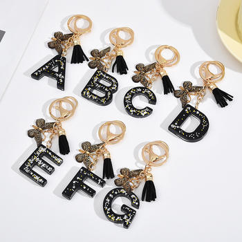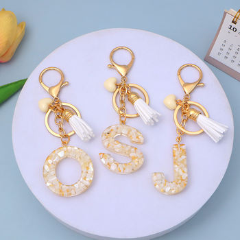 Gold Initial Sequin Star Keychain with Tassel Bag Charm