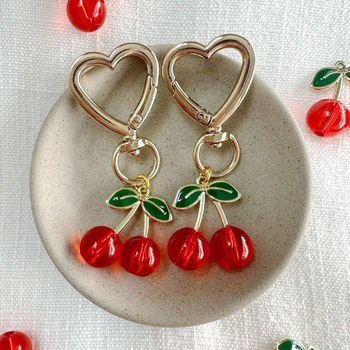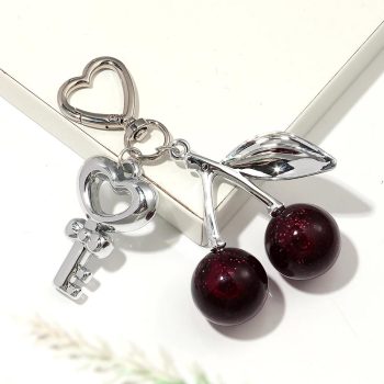 Cherry Heart Buckle Keychain – Cute Acrylic Fruit Bag Pendant