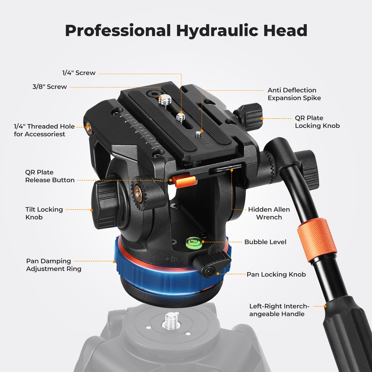 • Easy-to-Use Design: With built-in hex wrenches, an adjustable ambidextrous handle, and anti-rotation pins, this fluid head ensures professional control with ease of use for any filming scenario.