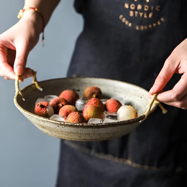Elevate your dining experience with our Handmade Japanese Coarse Pottery Dinner Plate. Featuring a unique rope handle and a rustic design, this plate is perfect for serving your favorite dishes, from rice to fruits. Crafted with care, this exquisite piece enhances your table setting while reflecting a blend of traditional Japanese craftsmanship and contemporary style.