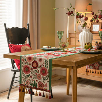 Retro Sunflower Jacquard Table Runner with Tassels – Ethnic Dining Décor