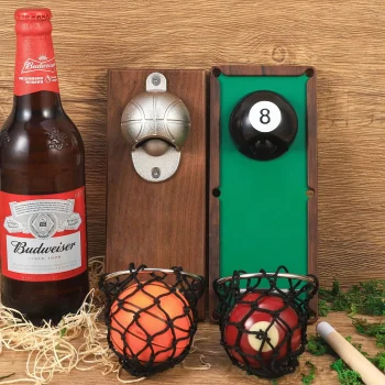 Magnetic Basketball Wall Bottle Opener with Cap Catcher – Wooden Design