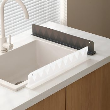 Adjustable Kitchen Sink Splash Guard with Expandable Storage Shelf