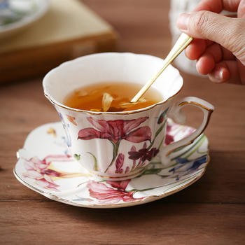 European Floral Porcelain Coffee Mug with Tray – 6.8 oz